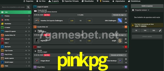 O pinkpg oferece uma grande seleção de opções de apostas em e-sports com probabilidades competitivas